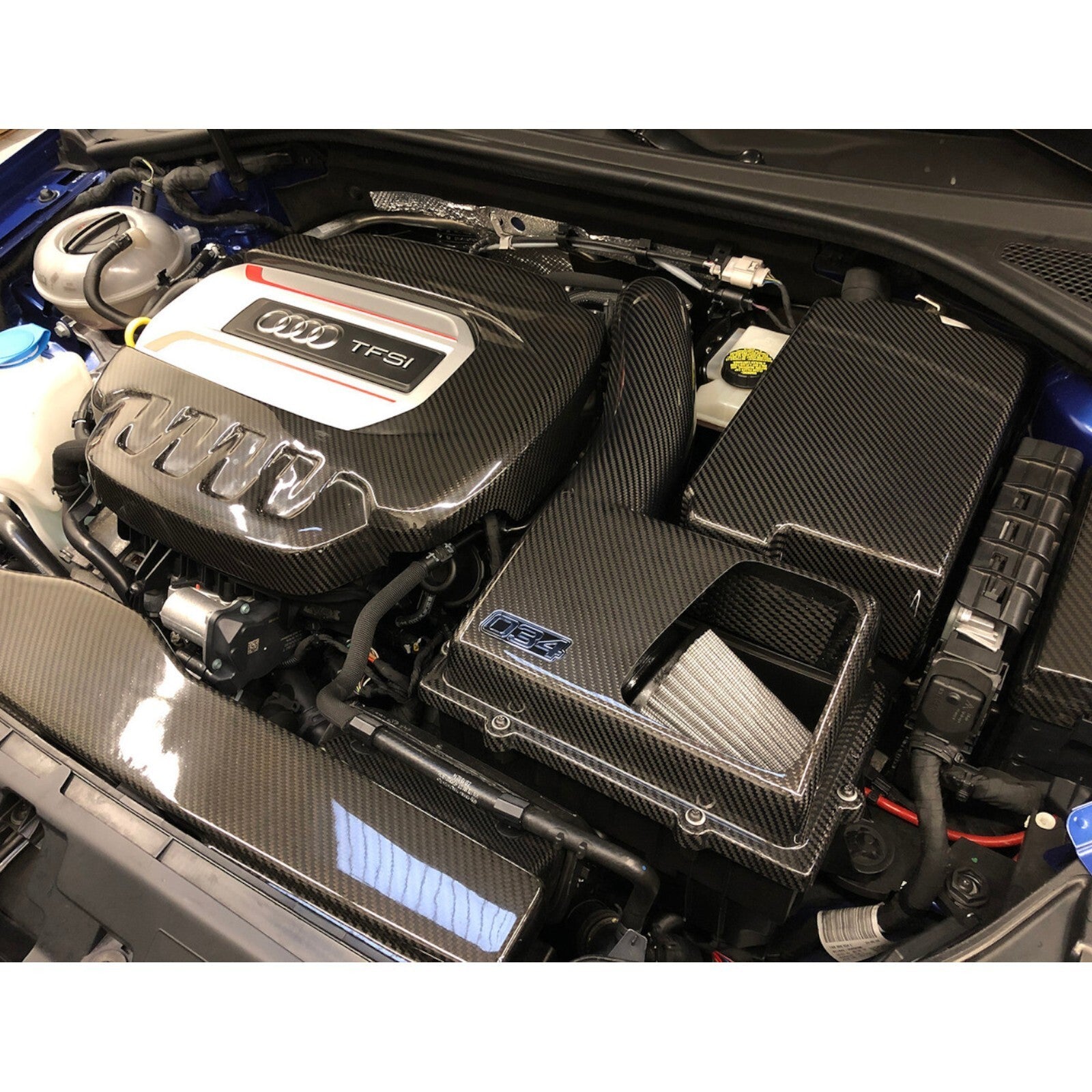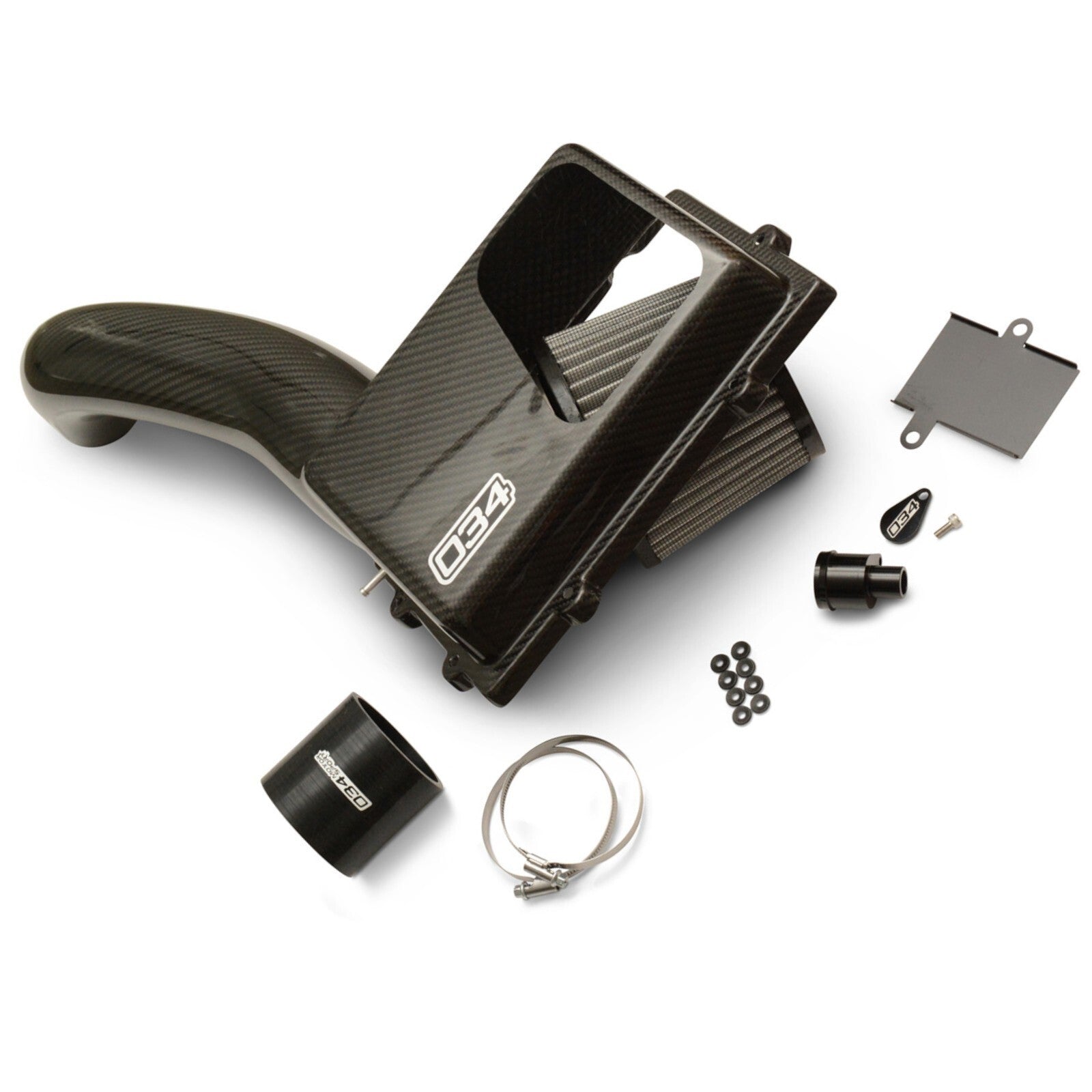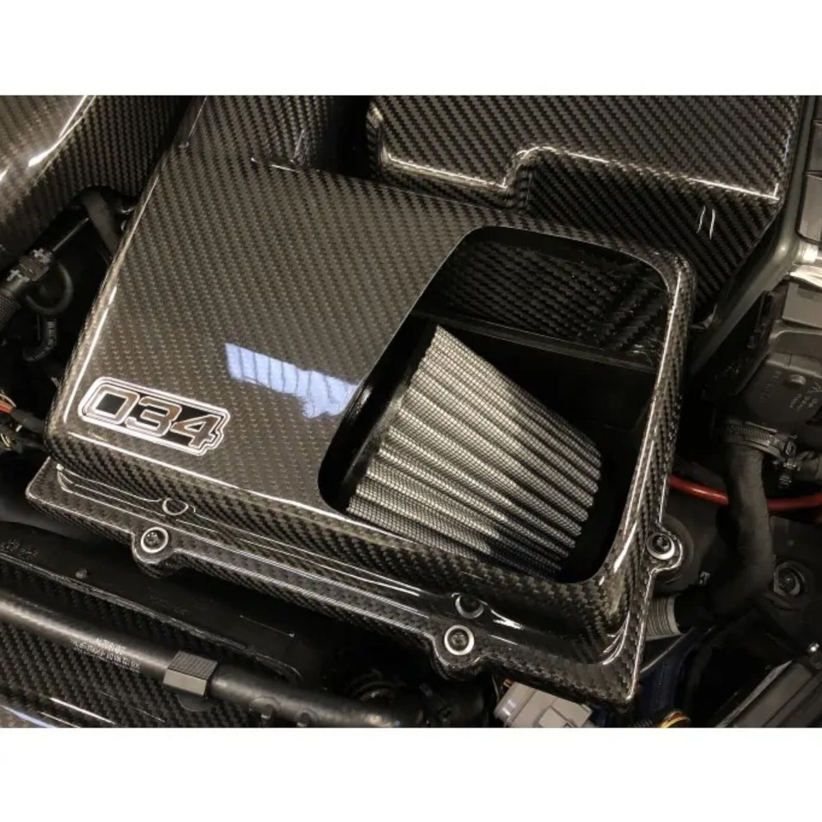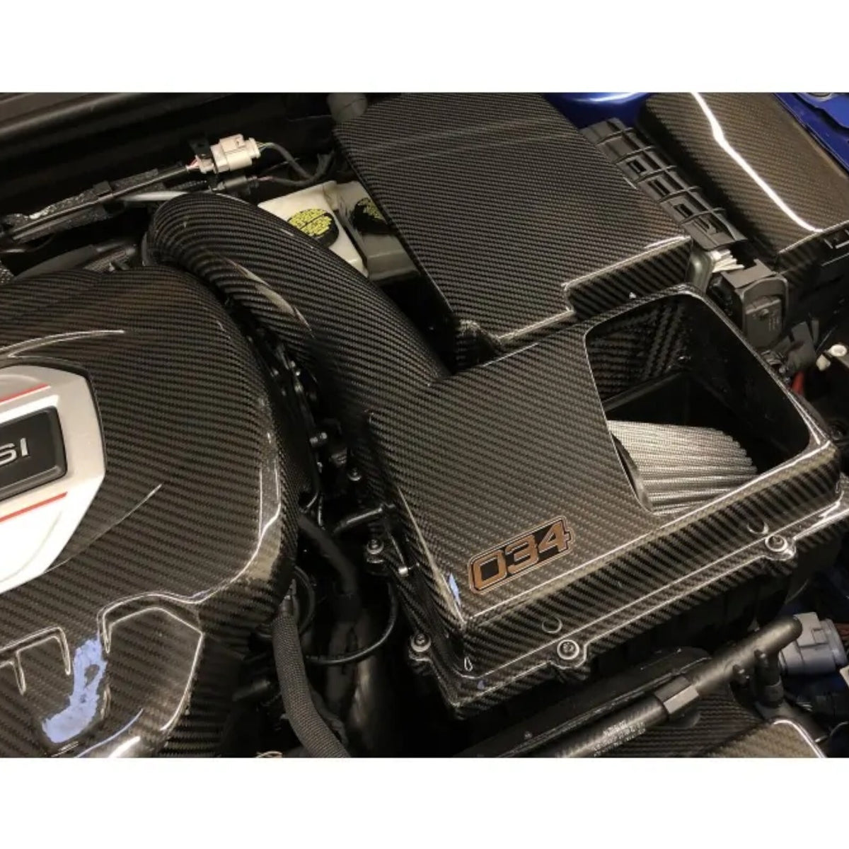 034Motorsport carefully selected the carbon fiber weave on the intake tube and upper airbox heat shield to match the factory carbon fiber engine trim found in Audi RS-model engine bays. The included cnc-machined billet aluminum-secondary air adapter and cap are anodized in black for a beautiful appearance and resistance to the elements.