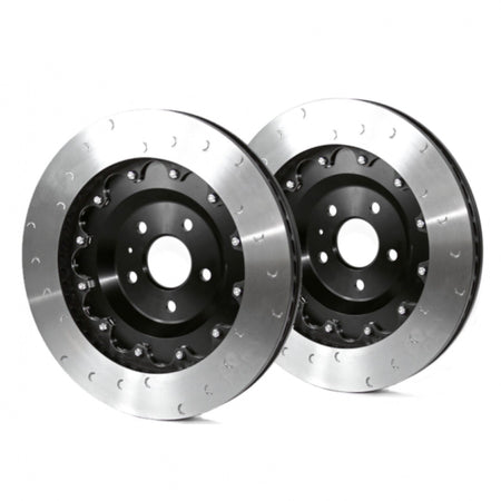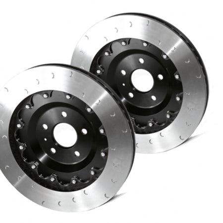 Revo discs are manufactured by Alcon and utilise over thirty years of motorsport expertise in their design and manufacture. Internal vanes are used to draw air through the centre of the disc outward, allowing the heat to transfer as it passes. The rotation of the discs and vanes play an important role in brake cooling as it acts as a pump to move air and unlike the OEM brake discs, the Revo upgrade consists of a right and left-hand disc to optimise cooling and ensure consistent stopping power for your vehicle.