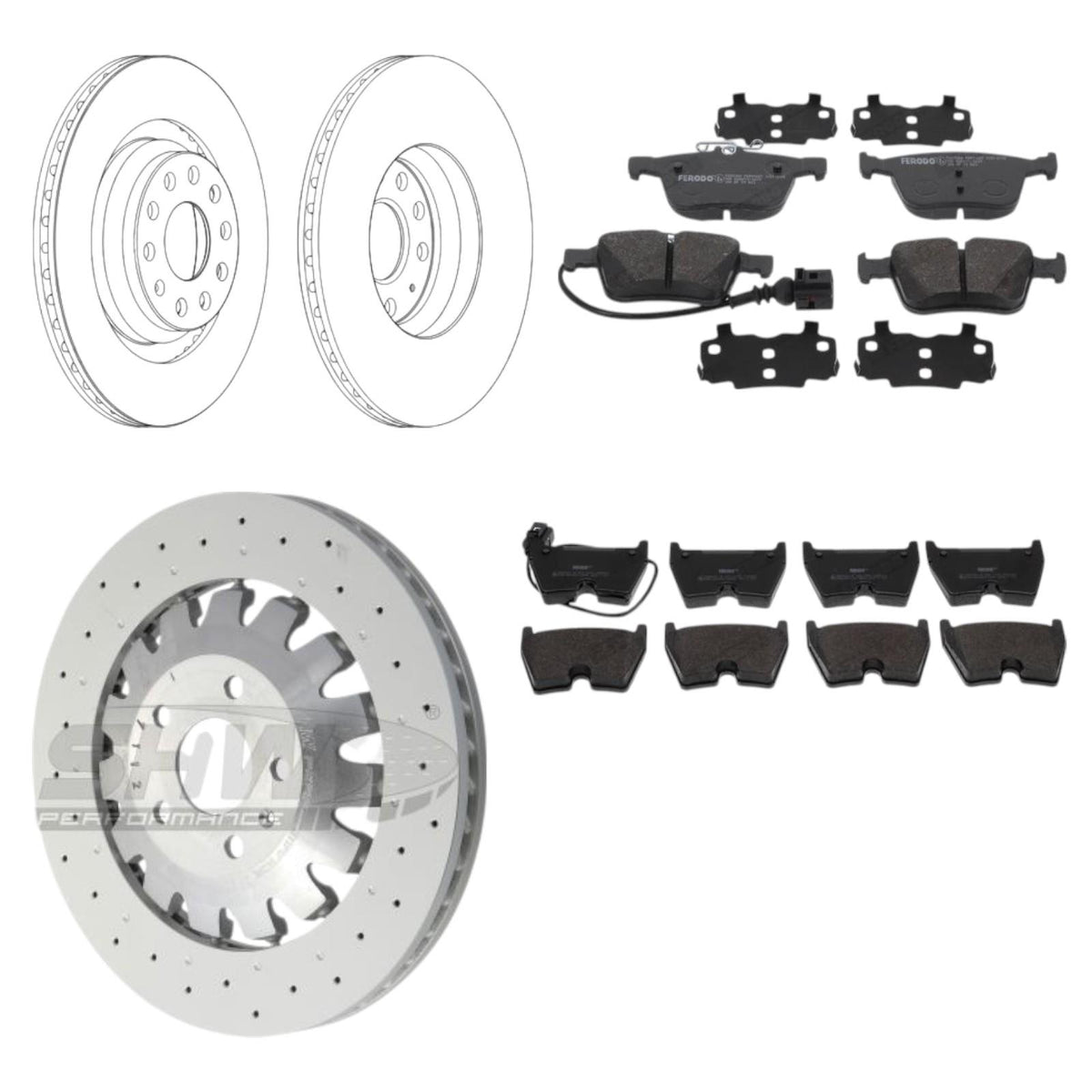 Audi RS3 8V Saloon SHW OE Brake Discs And Ferodo Pads Sensors Front Rear Package