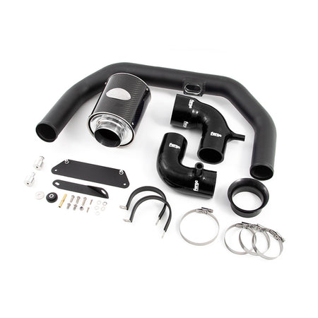 During our testing, we found that the location of the original air box was susceptible to a vast amount of heat soak, which lead us to relocate the location of where the air filter/airbox should be located in the engine bay. After extensive testing, we found that our carbon fibre canister filters worked the best. The filter element itself is provided by Pipercross, and is fully serviceable or replaceable if necessary. The pipe work of the kit runs around the cold side of the engine, this again is to keep intake temperatures down as low as possible. In total, we observed intake temperatures fall from 32°C down to 26°C. These numbers will come down further still with the addition of our intercooler upgrade.