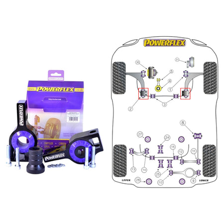 Powerflex Front Wishbone Arm Rear Poly Bushes Anti-Lift Kit & Caster Adjust x2