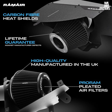 - Aluminium heatsheild which helps maintain low intake temperatures by providing a physical barrier between the air filter and the rest of the engine bay.