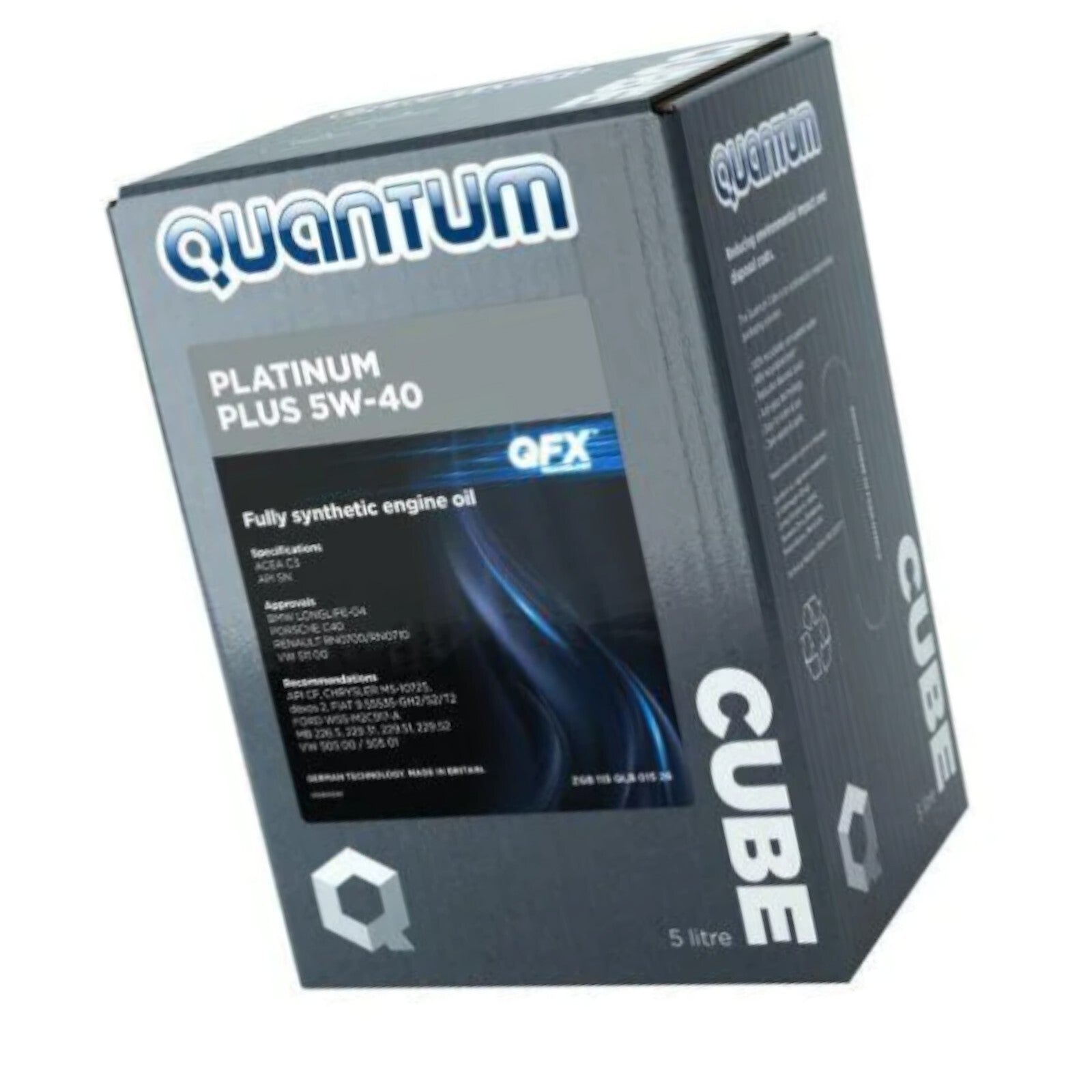 Quantum Platinum Plus 5w40 fully synthetic Engine Oil 5 Litre Cube ZGB115QLB01526 For API CF BMW Long-Life-04 for models up to end 2018 Fiat 9.55535-GH2 / S2 / T2 MB 229.31