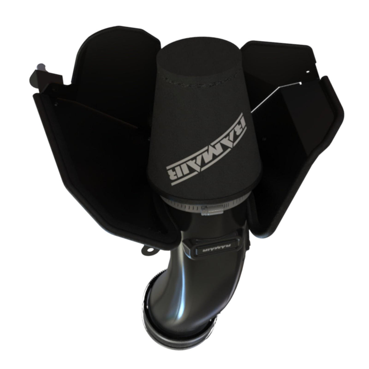 CNC-cut black powder-coated heatshield – protects intake from engine bay heat.