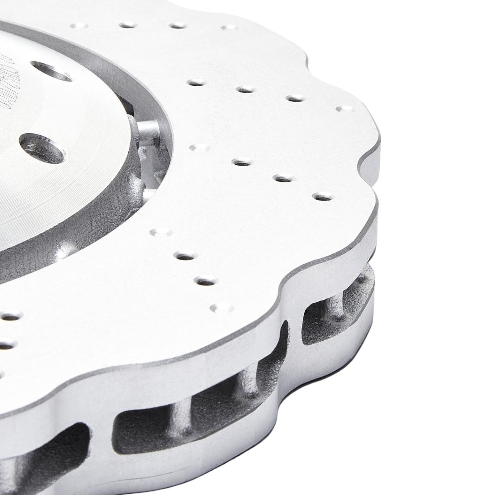 Features: internally vented, two-part brake disc, perforated / nubby