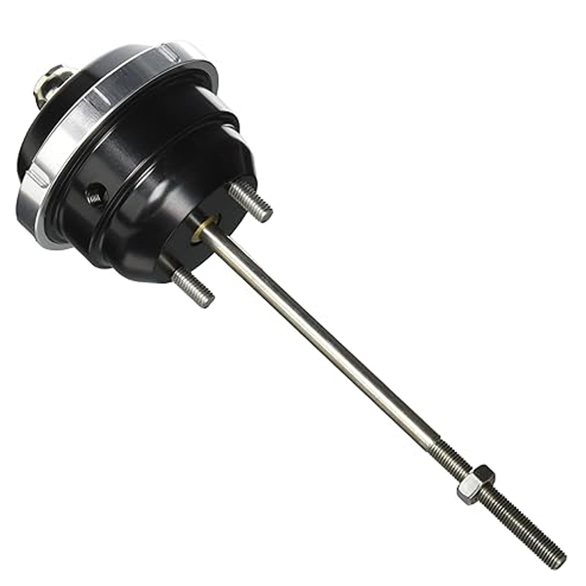 This is a Universal Twin Port IWG75 Actuator with a 1/4 UNF thread for fitment on various turbochargers. Some fabrication is likely required, including additional hardware such as clevis and brackets.
